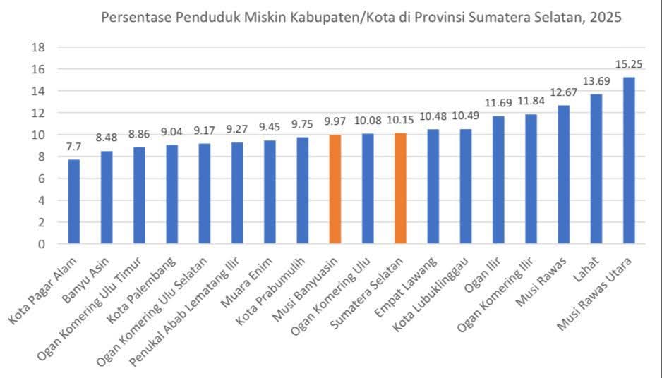 Mediatrapnews, Palembang – Kabupaten Banyuasin berhasil menurunkan angka kemiskinan secara signifikan, dari 9.58 persen per 30 November 2024, menjadi 8.48 persen pada September 2025. Angka tersebut lebih rendah kedua dari rata-rata 18 Kabupaten/Kota yang ada di wilayah Provinsi Sumsel.