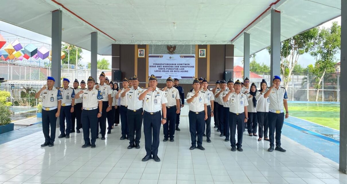 Mediatrapnews,Ogan Komering Ilir — Lembaga Pemasyarakatan (Lapas) Kelas IIB Kayu Agung menegaskan komitmennya dalam memerangi peredaran narkoba, handphone ilegal, dan praktik pungutan liar melalui pelaksanaan Ikrar Serentak Zero HALINAR. Kegiatan ini menjadi langkah konkret dalam memperkuat integritas serta menciptakan lingkungan pemasyarakatan yang bersih, aman, dan profesional.Sabtu,18 April 2026.