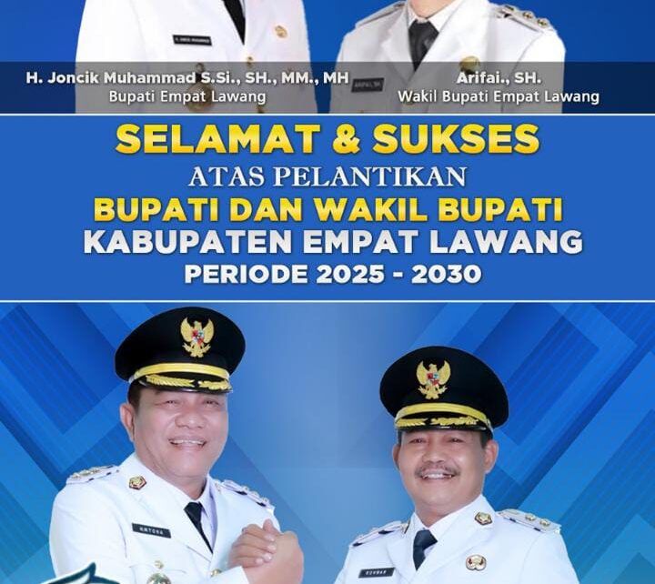 MEDIATRAPNEWS,MUBA – Pada hari ini, 16 Juni 2025, Gubernur Sumatera Selatan melantik Bupati dan Wakil Bupati Empat Lawang terpilih untuk periode 2025-2030 di Griya Agung. Bupati Musi Banyuasin, HM Toha, dan Wakil Bupati Muba, Kyai Rohman, memberikan ucapan selamat dan sukses kepada pemimpin baru tersebut.
