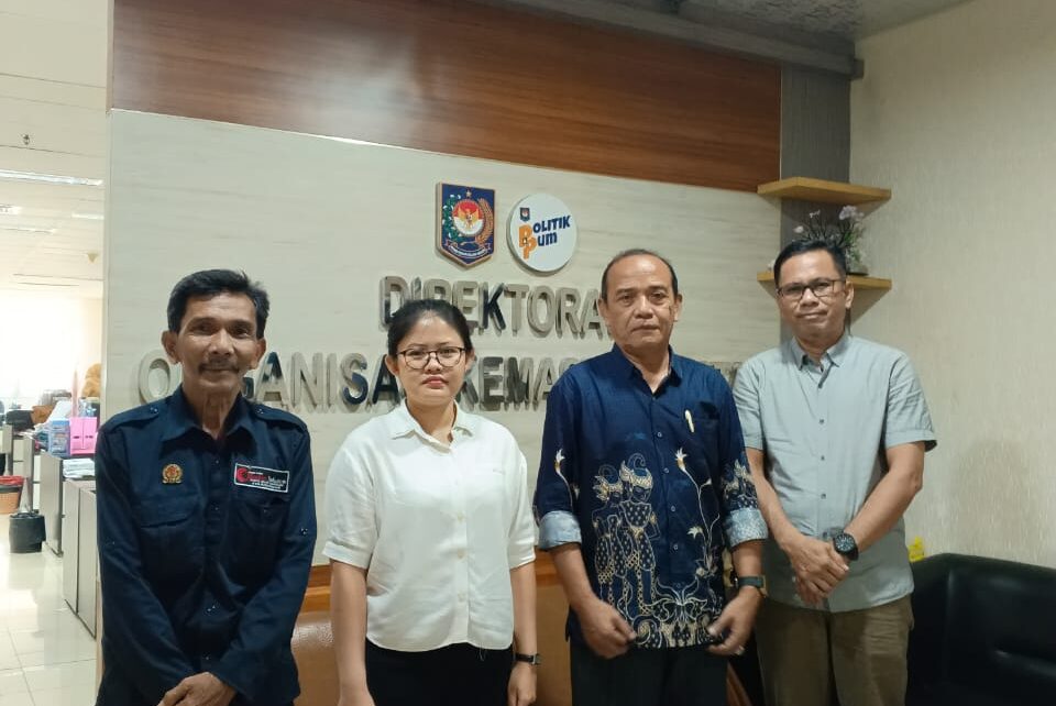 Ketua umum Asosiasi Wartawan Indonesia di dampingi wasekjen dan Humas Laporanjan Kegiatan Tahunan Ke Mendagri Melalui Direktorat Organisasi Kemasyarakatan