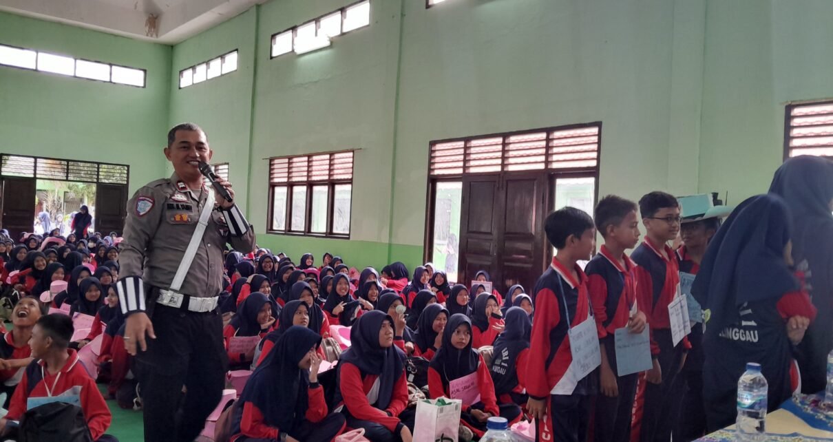 LUBUK LINGGAU – Dalam rangka menekan angka pelanggaran dan kecelakaan lalu lintas di kalangan pelajar, Satuan Lalu Lintas (Satlantas) Polres Lubuk Linggau di bawah naungan Polda Sumatera Selatan, kembali menggelar program unggulan “Police Go To School”. Pagi ini, Selasa (15/7/2025), kegiatan tersebut dilaksanakan di Madrasah Tsanawiyah (MTs) Negeri 1 Kota Lubuk Linggau.