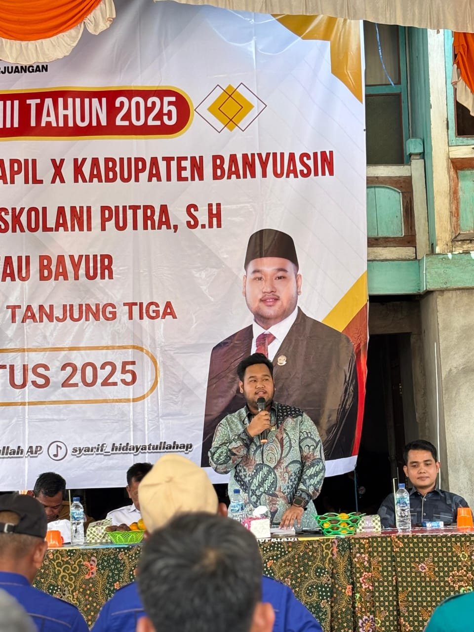 Banyuasin, Mediatrapnews – Anggota DPRD Sumsel Dapil Banyuasin M Syarif Hidayatullah Askolani Putra SH, laksanakan reses di sejumlah tempat di Kabupaten Banyuasin yang merupakan daerah pilihnya.