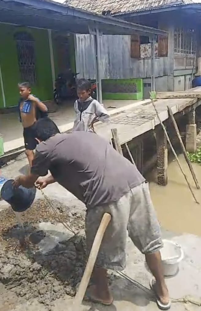 “alhamdulilah berkat bantuan masyarakat sekitar hari ini bisa terlaksana mulai dari pembelian semen pasir dan untuk pekerja nya saya sendiri di bantu rekan rekan lain nya”tandasnya