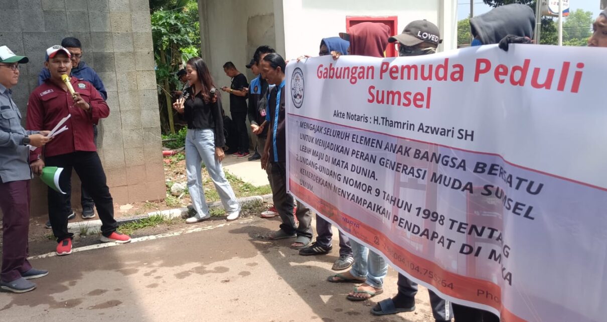 Mediatrapnews,Palembang, – Puluhan masa dari lembaga Gabungan Pemuda Peduli Sumsel menggelar aksi demonstrasi di depan kantor Kejaksaan Tingg Sumatera selatan, mendesak aparat penegak hukum (APH) untuk segera mengusut tuntas dugaan tindak pidana korupsi dalam proyek pengadaan alat peraga praktik sekolah SMK tahun anggaran 2024.