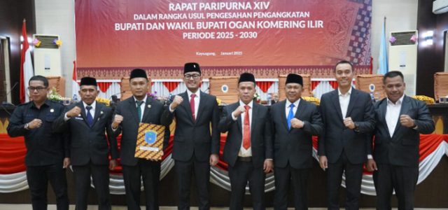 Mediatrapnews, Ogan Komering ilir – Dewan Perwakilan Rakyat Daerah (DPRD) Kabupaten Ogan Komering Ilir (OKI) menggelar rapat paripurna XIV dalam rangka pengusulan, pengumuman, dan pengesahan pengangkatan Bupati serta Wakil Bupati OKI terpilih periode 2025–2030, bertempat di Gedung DPRD OKI, Jumat (10/1/2025).