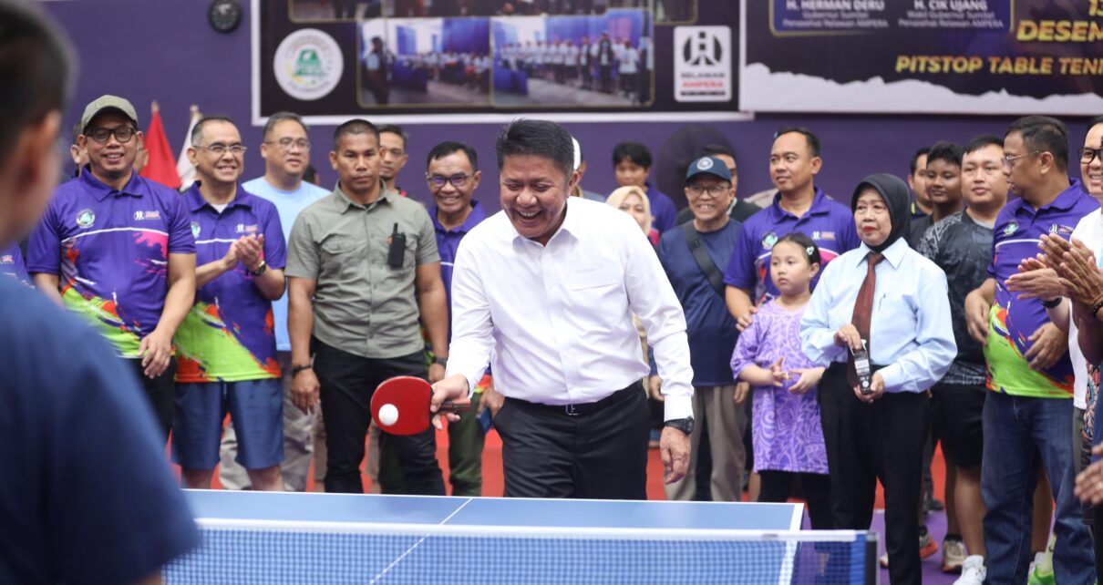 Mediatrapnews, Palembang – Gubernur Sumatera Selatan Dr. H. Herman Deru membuka secara resmi Kejuaraan Tenis Meja HDCU Open yang digelar oleh PTMSI Kota Palembang bekerja sama dengan Relawan Ampera, Sabtu (13/12/2025), di Pitstop Table Tennis Center, Palembang.