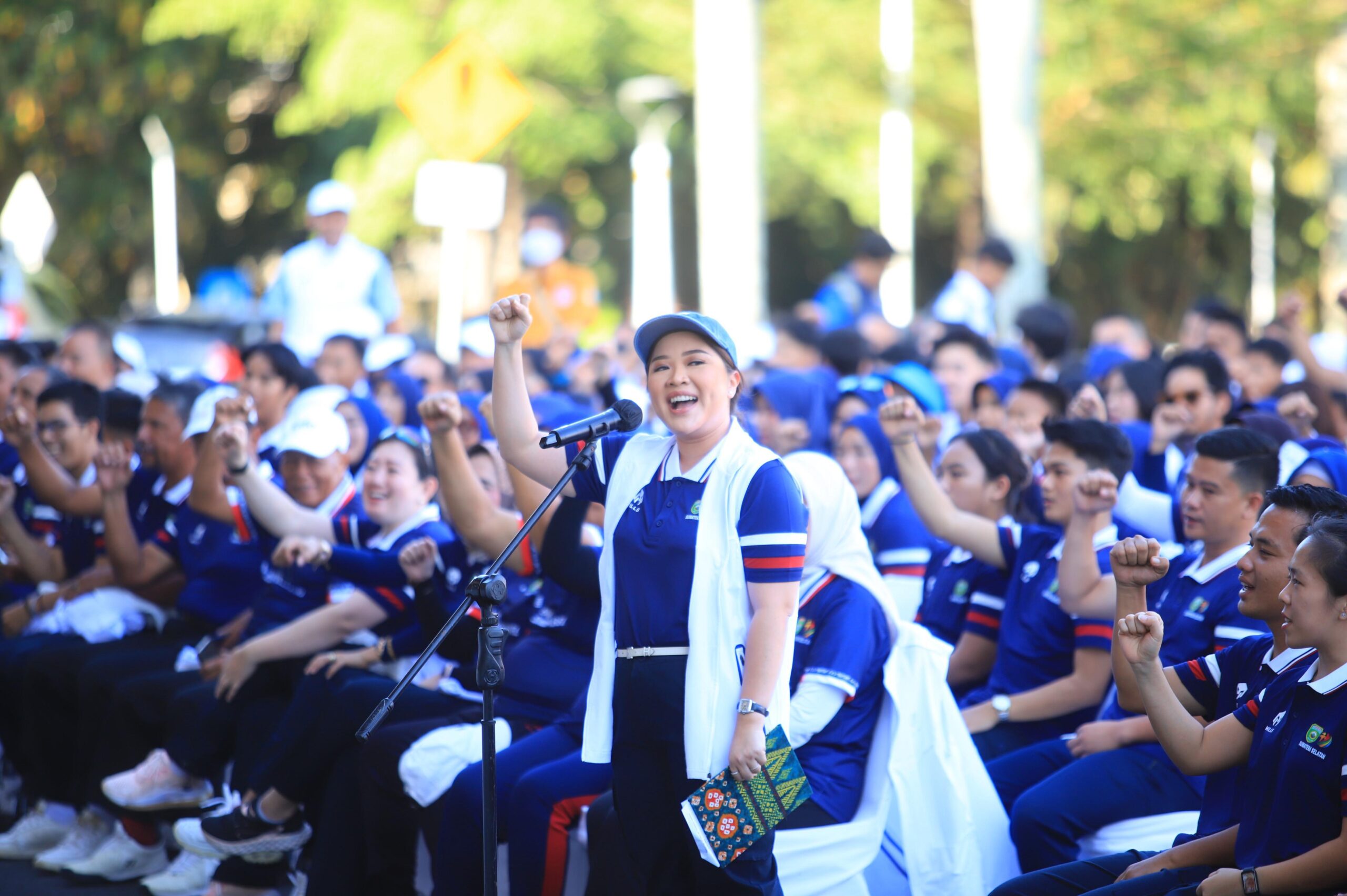 Pengukuhan kontingen dilakukan secara simbolis dengan pemasangan atribut kepada perwakilan pegiat. Atmosfer semangat dan solidaritas sangat terasa dalam momen tersebut.