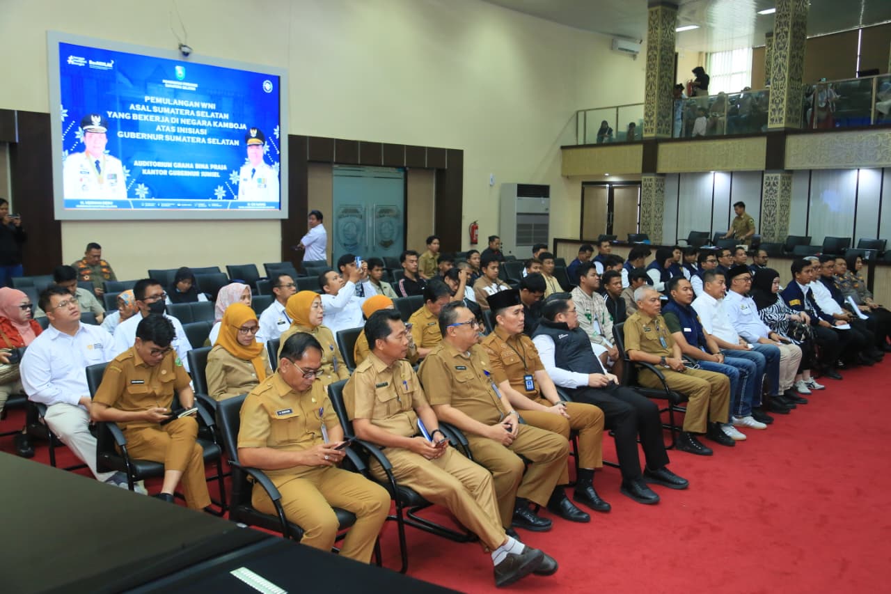 “Saya sempat bertanya-tanya, kenapa bisa sampai terdampar di Kamboja, apakah sengaja atau tertipu. Ternyata mereka ke sana untuk mencari nafkah. Mengetahui hal ini, saya langsung memerintahkan Kepala Dinas Tenaga Kerja dan Transmigrasi (Disnakertrans) Sumsel bekerja sama dengan Polda Sumatera Selatan untuk memulangkan mereka. Hal ini juga terwujud atas bantuan Bank Sumsel Babel,” kata Herman Deru saat menerima kepulangan WNI asal Sumsel di Auditorium Graha Bina Praja, Palembang, Senin (30/03/2026).