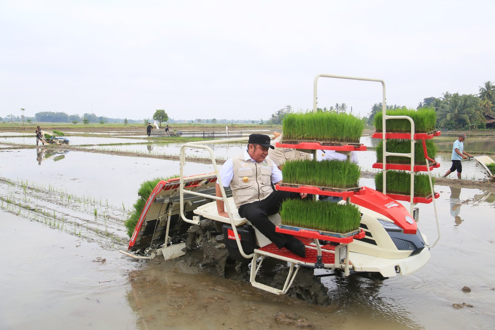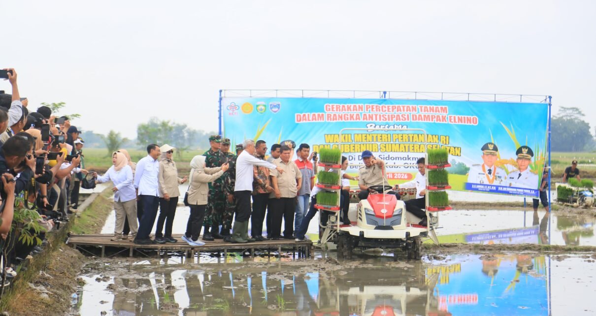 Selanjutnya, Gubernur Herman Deru bersama Wamentan Sudaryono melaksanakan Gerakan Percepatan Tanam sebagai langkah antisipasi dampak El Nino. Kegiatan tersebut digelar di lahan seluas 4 hektare di Desa Sido Makmur, Kecamatan Belitang, dengan memanfaatkan alat dan mesin pertanian (alsintan) berupa transplanter riding.
