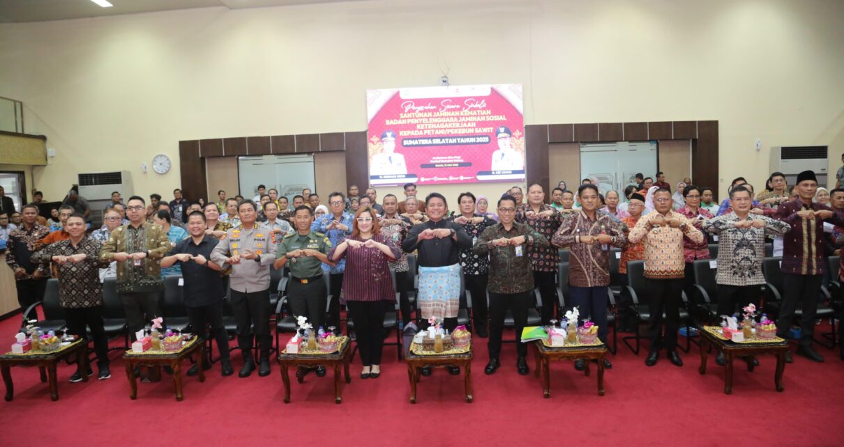 Mediatrapnews, Palembang – Gubernur Sumatera Selatan (Sumsel) H. Herman Deru secara simbolis menyerahkan santunan Jaminan Kematian dari BPJS Ketenagakerjaan kepada petani dan pekebun sawit Sumsel tahun 2025. Acara penyerahan berlangsung di Auditorium Bina Praja, Kantor Gubernur Sumsel, Kamis (15/5/2025) sore.