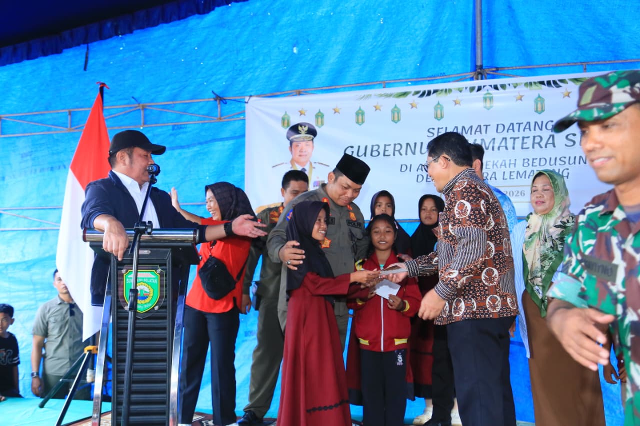 Mediatrapnews, Muara Enim – Gubernur Sumatera Selatan Dr. H. Herman Deru menghadiri kegiatan Sedekah Bedusun di Desa Muara Lematang, Kecamatan Sungai Rotan, Kabupaten Muara Enim, Selasa (3/2/2026).