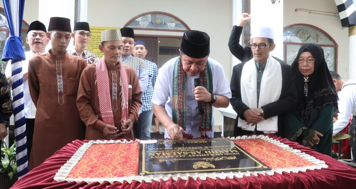 H. Cek Mat mengucapkan terimakasih kepada Gubernur Sumsel Herman Deru yang sudah bersedia datang sholat jumat berjamaah dan sekaligus meresmikan masjid As-Salman.