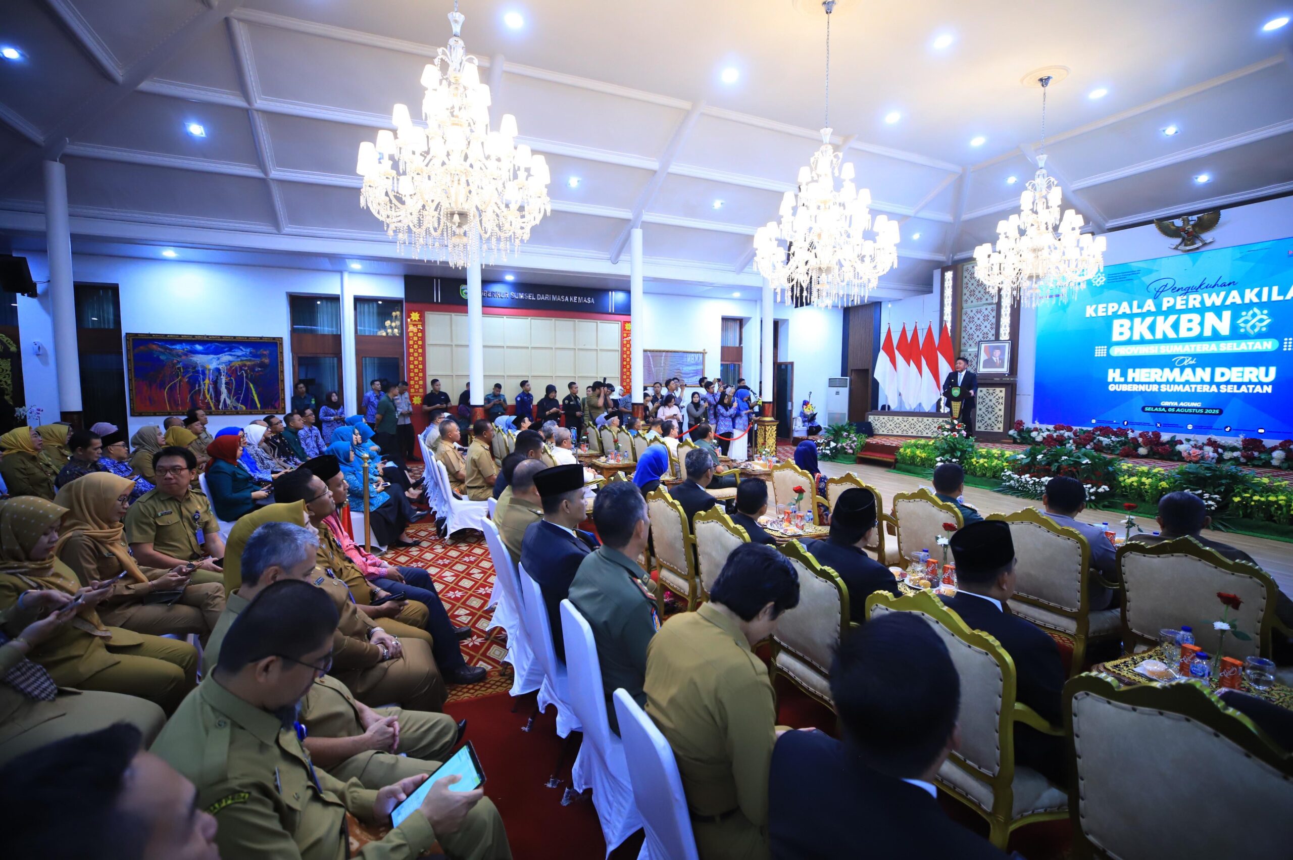 Mediatrapnews, Palembang – Dalam rangka pengukuhan Kepala Perwakilan BKKBN Provinsi Sumsel yang baru, dr. Arios Saplis, Gubernur Sumatera Selatan Dr. H. Herman Deru, MM menegaskan bahwa penanganan isu kependudukan dan keluarga tidak bisa dilakukan sendiri. Ia menekankan pentingnya sinergi antara BKKBN, TP PKK, dan stakeholder lainnya dalam menekan angka stunting dan meningkatkan kesejahteraan masyarakat.