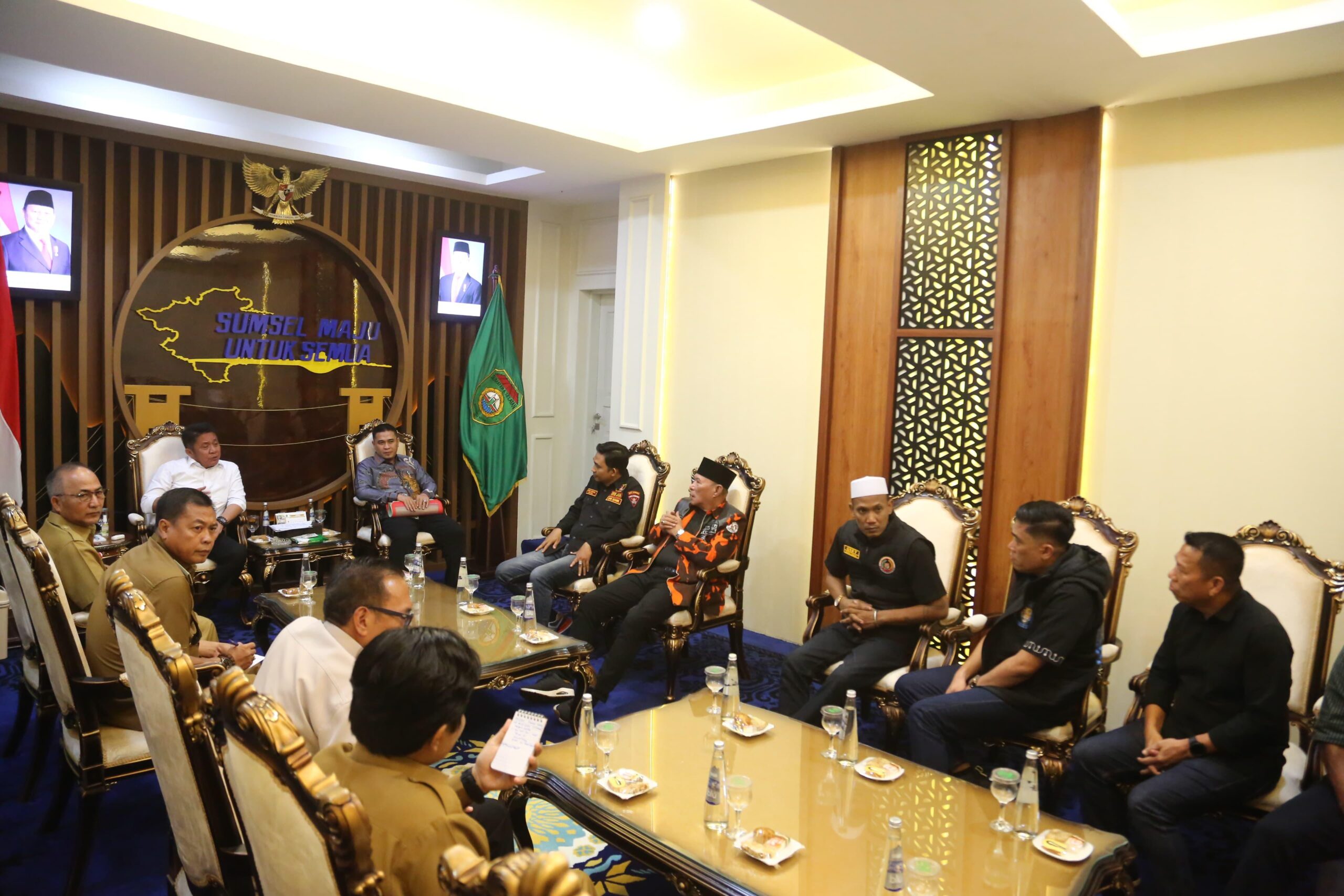 Mediatrapnews, Palembang – Gubernur Sumatera Selatan Dr. H. Herman Deru menerima kunjungan Koalisi Ormas Bersatu Provinsi Sumatera Selatan dalam rangka silaturahmi di Ruang Tamu Gubernur, Senin (24/11/2025).