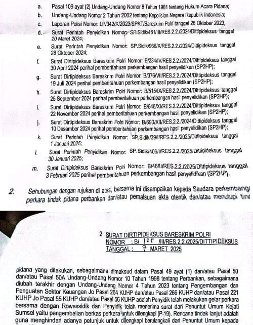 Mediatrapnews,Palembang –Perkara pemalsuan dokumen RUPSLB Bank Sumsel Babel sepertinya mangkrak di tangan penyidik Kejati Sumsel padahal sudah di tetapkan 3 tersangka oleh Bareskrim Mabes Polri.