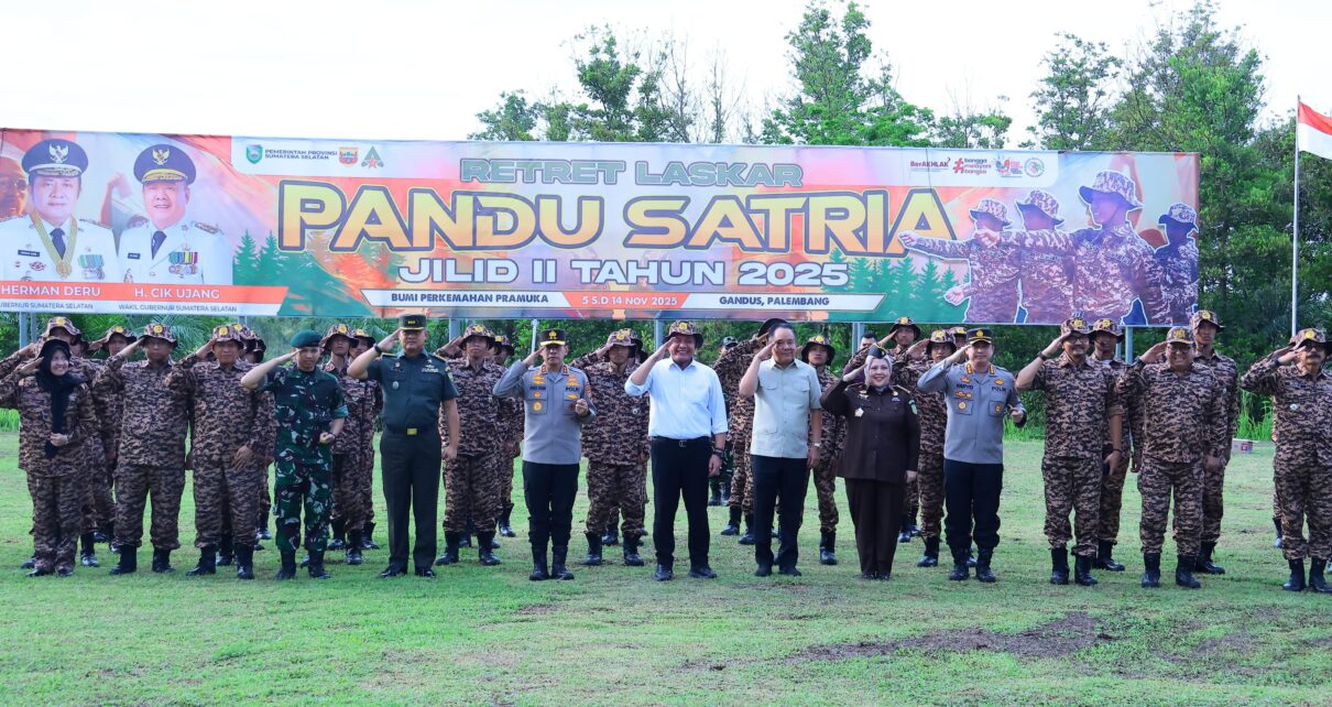 Mediatrapnews, Palembang – Gubernur Sumatera Selatan Dr. H. Herman Deru mendorong para peserta Retret Laskar Pandu Satria (LPS) Jilid II menjadi agen perubahan di lingkungan masing-masing. Hal ini disampaikannya saat membuka kegiatan tersebut di Bumi Perkemahan Gandus, Kamis (6/11/2025).