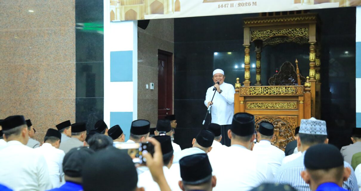 Mediatrapnews, Palembang – Gubernur Sumatera Selatan (Sumsel), Dr. H. Herman Deru, menghadiri Pengajian Ramadan 1447 Hijriah bersama Forkopimda dan BUMN Provinsi Sumsel di Masjid As Saadah, Mapolda Sumsel, Kamis (19/2/2026)malam.