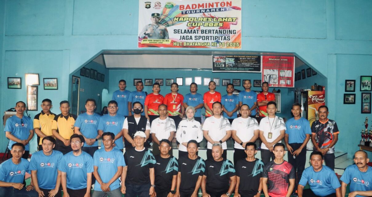 Mediatrapnews,Lahat —  pada hari rabu 11 juni 2025, Kapolres Lahat AKBP Novi Edyanto SIK.MIK, membuka secara resmi turnamen Badminton Cup dalam rangka memperingati Hari Bhayangkara ke-79 tahun 2025. Turnamen ini diselenggarakan di GOR M.Hasan Aspol Bandar Agung Lahat ( terbuka untuk umum ) diikuti oleh para atlet badminton dari berbagai kalangan, baik dari internal Polri maupun masyarakat umum.