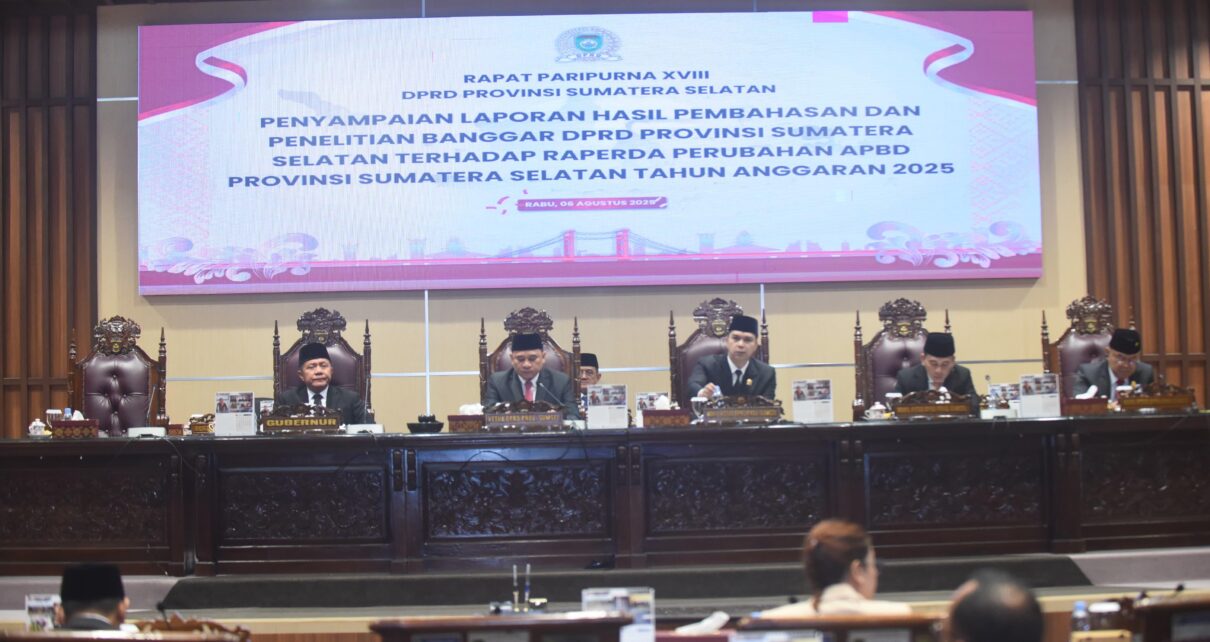 Mediatrapnews, Palembang – Sinergi antara Pemerintah Provinsi Sumatera Selatan dan Dewan Perwakilan Rakyat Daerah (DPRD) kembali membuahkan hasil nyata. Pada Rabu (6/8/2025), Rapat Paripurna ke-18 DPRD Sumsel secara resmi menyetujui Raperda tentang Perubahan APBD Provinsi Sumsel Tahun Anggaran 2025.