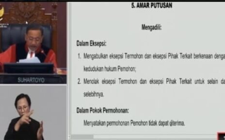 sidang putusan yang dipimpin oleh Ketua Majelis Hakim Suhartoyo menolak gugatan H. Budi Antoni dan Heny Verawati (HBA-Heny). Dalam perkara Nomor 323/PHPU.BUP-XXIII/2025, 26 Mei 2025, MK menyatakan permohonan yang diajukan oleh Pasangan Calon (Paslon) 01 tersebut tidak dapat diterima.
