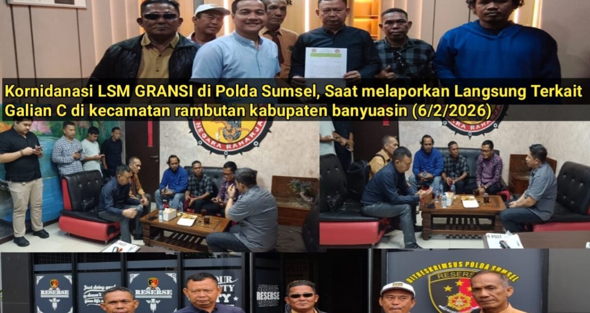 Mediatrapnews, BANYUASIN – Ketua LSM GRANSI, Supriyadi, menegaskan komitmennya untuk mendorong penegakan hukum secara menyeluruh terhadap praktik penambangan ilegal (galian C) di wilayah Kabupaten Banyuasin, khususnya di Kecamatan Rambutan yang dinilai masih terdapat sejumlah titik yang belum tersentuh hukum.(21/02/2026)