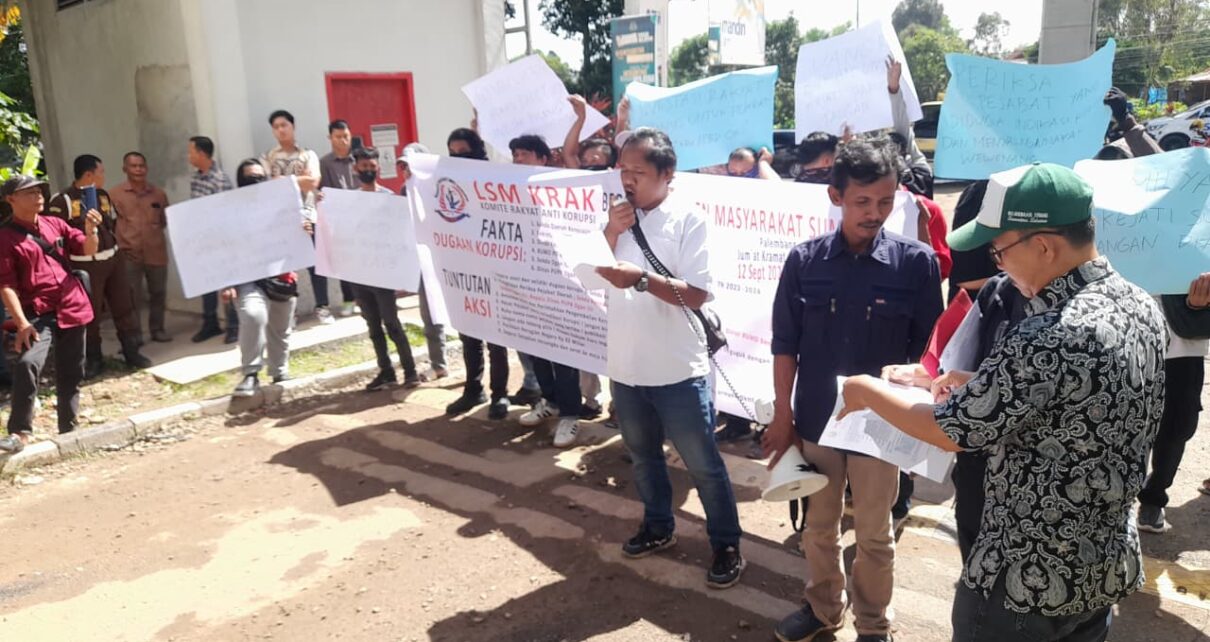 Mediatrapnews,Palembang – Lembaga Swadaya Masyarakat Komite Rakyat Anti Korupsi (KRAK) bersama elemen masyarakat Sumatera Selatan kembali menggelar aksi damai di depan Kantor Kejaksaan Tinggi (Kejati) Sumatera Selatan, Jumat (12/9). Aksi ini menyoroti dugaan praktik korupsi di Kabupaten Banyuasin yang berdasarkan temuan Badan Pemeriksa Keuangan (BPK RI) mencapai total kerugian negara sebesar Rp3,58 miliar.