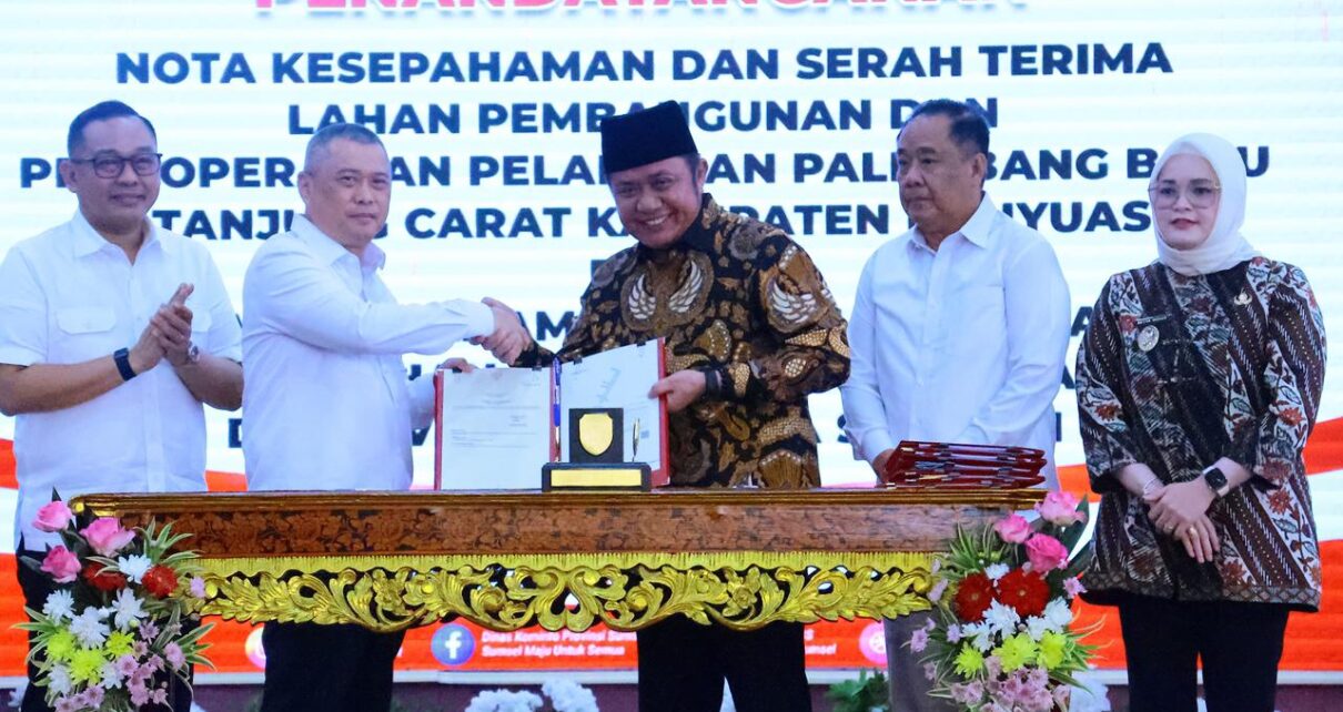 Mediatrapnews, Palembang – Mimpi besar masyarakat Sumatera Selatan untuk memiliki pelabuhan samudera kini selangkah lebih dekat. Di bawah komando Gubernur Sumsel Dr. H. Herman Deru, pemerintah provinsi menandatangani Nota Kesepahaman dan Serah Terima Lahan Pembangunan Pelabuhan Palembang Baru di Tanjung Carat, Banyuasin, Jumat (31/10/2025).