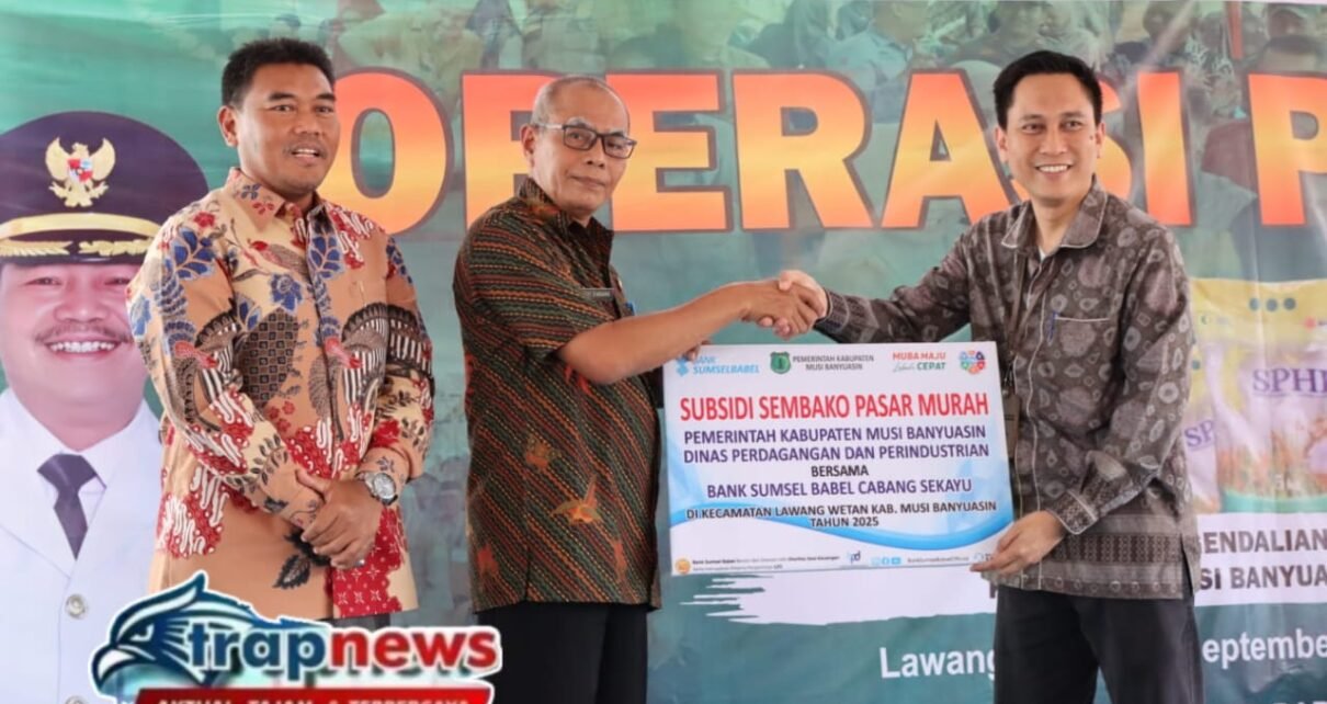 Mediatrapnews, Musi Banyuasin –Pemerintah Kabupaten Musi Banyuasin (Muba) kembali menunjukkan komitmennya dalam menjaga stabilitas harga dan ketersediaan bahan pokok bagi masyarakat. Melalui kolaborasi strategis dengan Perum Bulog Kanwil Sumsel Babel dan Bank Sumsel Babel Cabang Sekayu, operasi pasar murah digelar di halaman Kantor Camat Lawang Wetan, Kamis (04/09/2025).