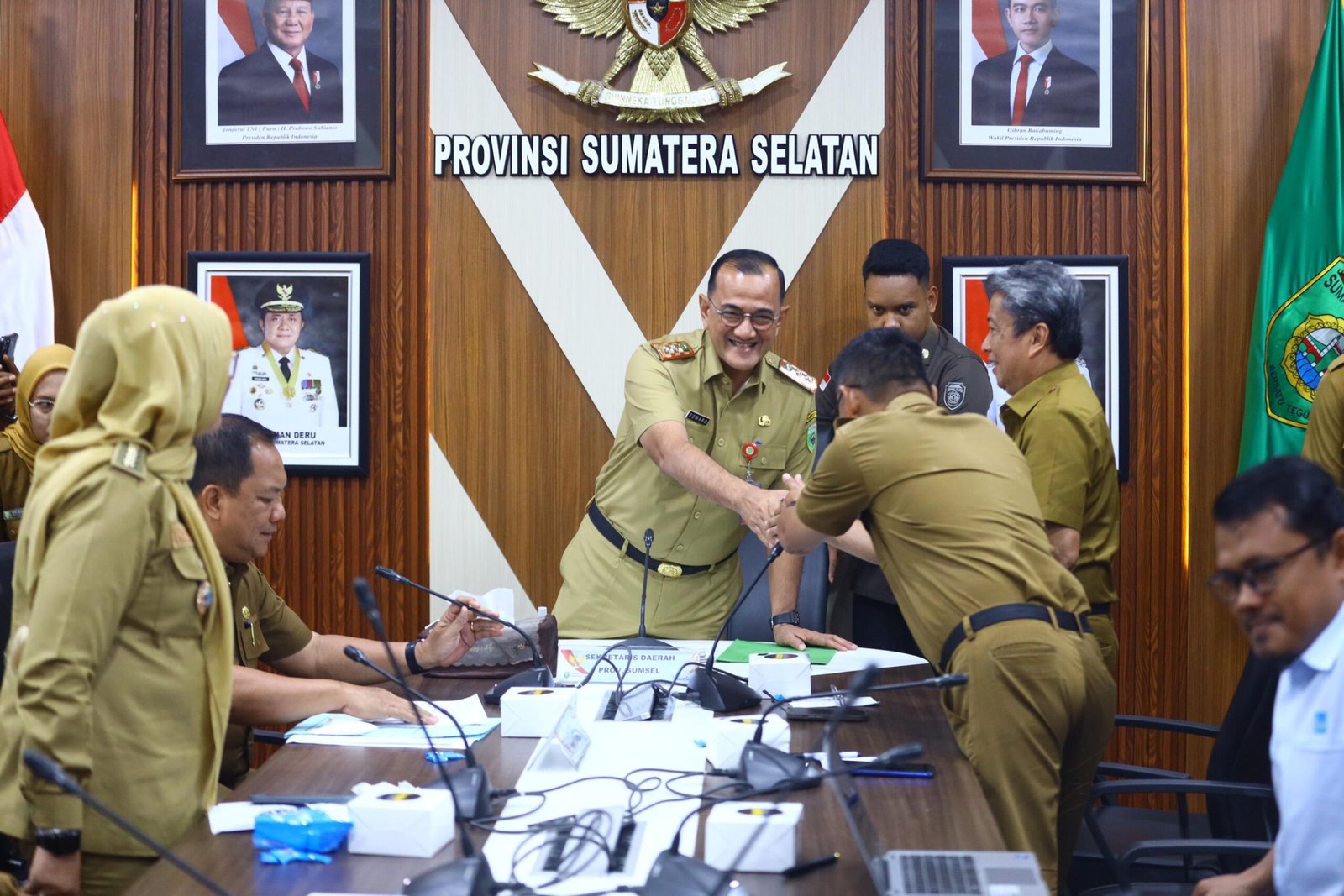 Rapat berlangsung di Ruang Rapat Sekretariat Daerah Provinsi Sumsel, Selasa (6/1/2026), dan dihadiri