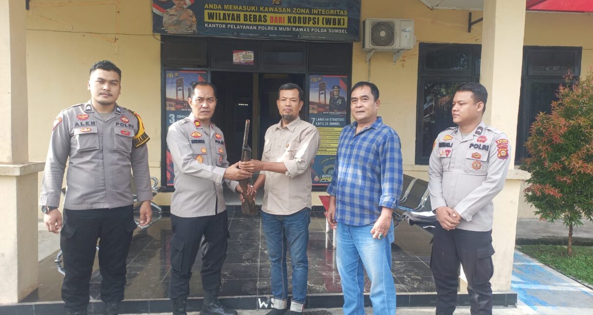 Musi Rawas – Dalam rangka Operasi Senpi Musi 2025, dua pucuk senjata api rakitan (Senpira) jenis kecepek laras panjang tanpa amunisi diserahkan secara sukarela oleh aparatur desa di wilayah hukum Polres Musi Rawas.18 Juni 2025
