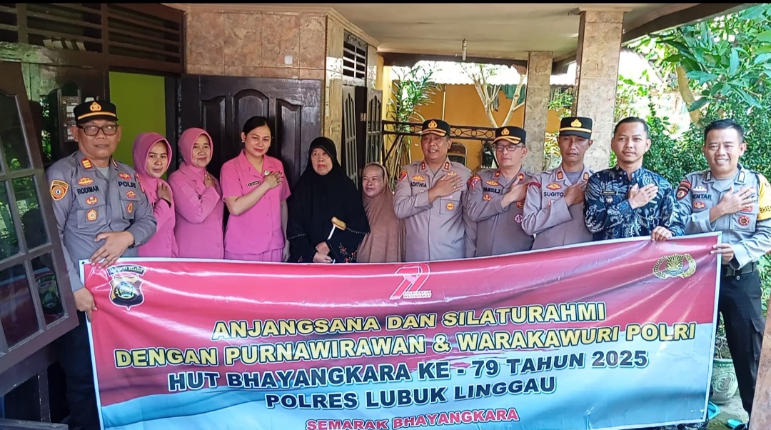 Lubuk Linggau — Dalam rangka memperingati Hari Ulang Tahun (HUT) Bhayangkara ke-79, Kapolres Lubuk Linggau Polda Sumatera Selatan, AKBP Adithia Bagus Arjunadi, melaksanakan kegiatan anjangsana ke kediaman Purnawirawan Polri Serma (Purn.) Nursahid yang beralamat di Kelurahan Taba Koji, Kecamatan Lubuk Linggau Timur I, Kota Lubuk Linggau.
