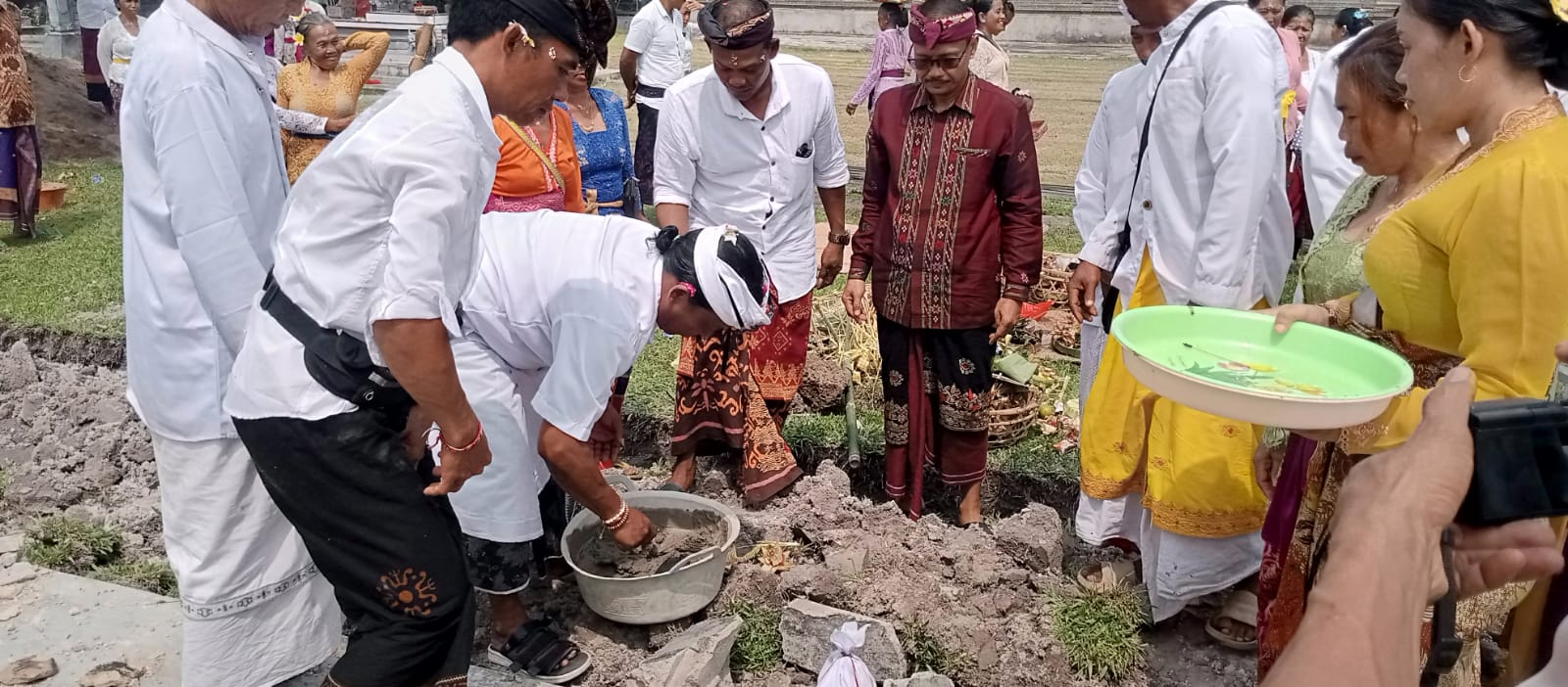 Pembangunan bale Banten yang sekaligus bertepatan pada hari Raya Saraswati,(peringatan turunnya ilmu dalam ajaran Hindu),ratusan umat datang hadiri peletakan batu pertama sekaligus doa bersama,agar sekiranya dalam pembangunan dapat berjalan lancar.