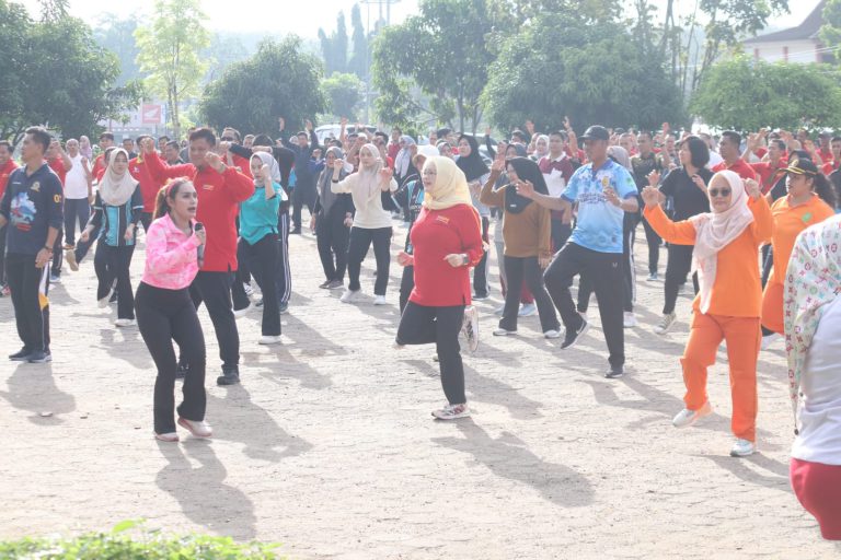 Pangkalan Balai, Mediatrapnews — Demi Banyuasin sehat dan bugar, Pemerintah Banyuasin bersama Dinas Pekerjaan Umum dan Penataan Ruang (PUPR) Banyuasin mengadakan senam pagi di Taman Kota Pangkalan Balai, Jum’at (13/6).