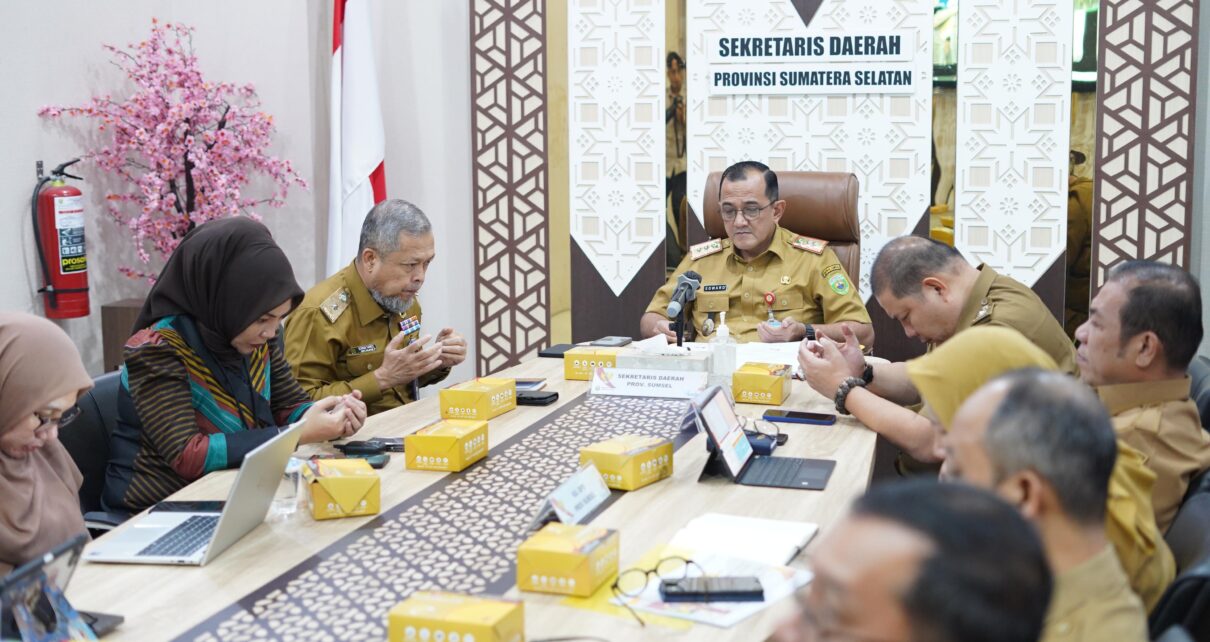 Kegiatan tersebut berlangsung di Command Center Kantor Gubernur Sumsel dan menjadi agenda rutin evaluasi pengendalian inflasi nasional sekaligus pembahasan dukungan daerah terhadap program strategis nasional Tiga Juta Rumah tahun 2026.