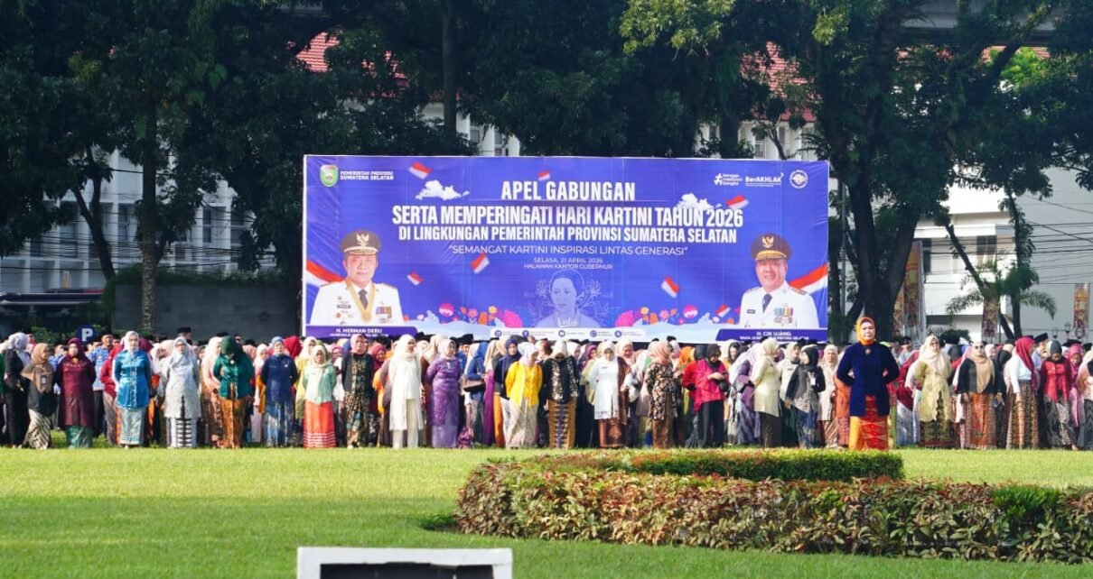 Mediatrapnews, Palembang – Pemerintah Provinsi Sumatera Selatan (Sumsel) menggelar apel gabungan dalam rangka memperingati Hari Kartini Tahun 2026 di lingkungan Pemprov Sumsel. Dalam kesempatan tersebut, Sekretaris Daerah (Sekda) Sumsel Dr. Drs. H. Edward Candra, M.H. membacakan amanat Menteri Pemberdayaan Perempuan dan Perlindungan Anak (PPPA) Republik Indonesia,Selasa(21/04/2026)