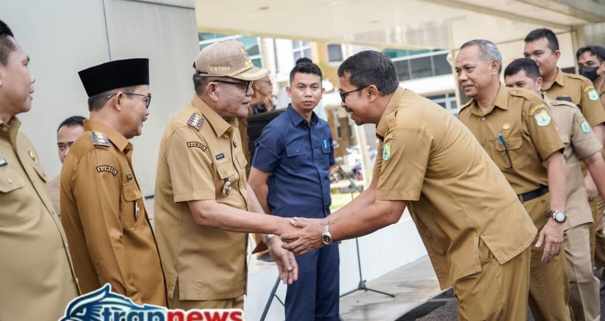 MEDIATRAPNEWS,MUBA – Ingatkan jajaran Pemerintah Kabupaten Musi Banyuasin (Pemkab Muba) untuk selalu kompak dan saling berbagi terhadap sesama. Bupati Muba H M Toha pimpin apel pagi bersama jajaran Aparatur Sipil Negara (ASN) yang berada di lingkungan Sekretariat Daerah Kabupaten Muba.