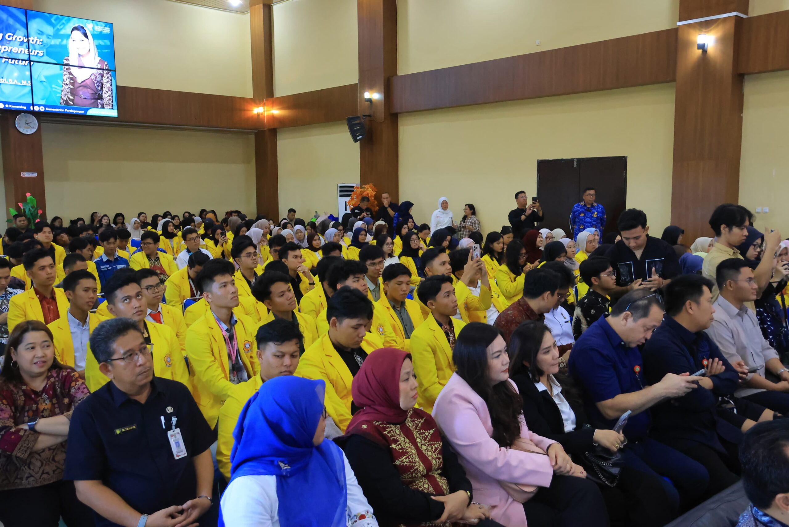 Kegiatan yang berlangsung di Gedung Fasilkom Lantai 7 Kampus Bukit Besar tersebut dihadiri ratusan mahasiswa yang antusias mengikuti paparan mengenai kewirausahaan dan peluang ekonomi masa depan. Turut hadir Wakil Menteri Perdagangan RI, Dyah Roro Esti Widya Putri.