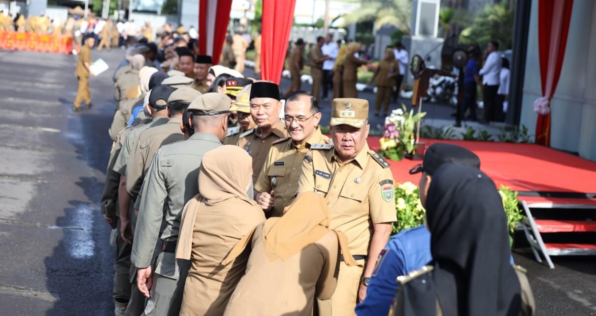 Sebelum membubarkan diri usai apel gabungan ini, Wagub didampingi Sekda bersama para kepala OPD berjabat tangan dengan seluruh ASN dan Non ASN.