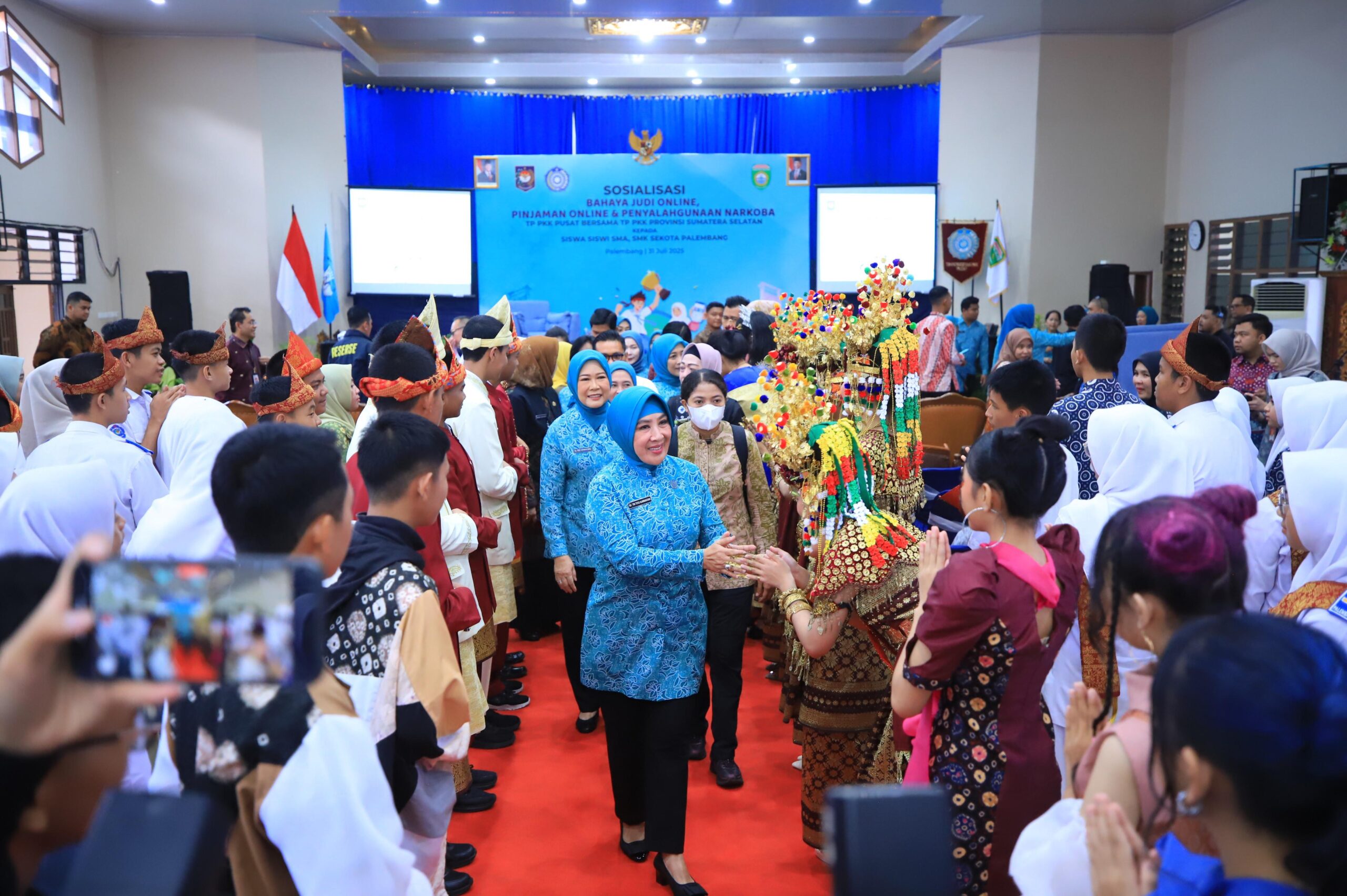 Ketua Umum TP PKK Pusat, Tri Suswati Tito Karnavian, bersama Ketua TP PKK Sumsel, Hj Febrita Lustia Herman Deru, hadir langsung menyampaikan edukasi penting ini kepada generasi muda. Agenda ini menjadi bagian dari upaya pencegahan dan pembinaan karakter remaja dalam menyongsong Indonesia Emas 2045.